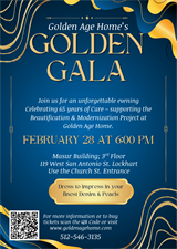 For over 65 years, Golden Age Home has provided excellent, compassionate care to Senior Adults in Caldwell County. On February 28, 2026, the GOLDEN GALA will bring together friends, families, supporters, and community partners for a night of connection, gratitude, and purpose to celebrate 65 Years of Care, Compassion & Community in an elegant setting.